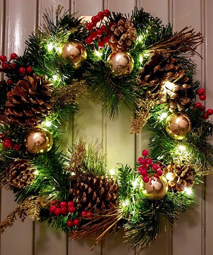 Se o seu objetivo é manter a essência clássica da decoração natalina, uma das escolhas mais certeiras é apostar nas folhagens verdes, naturais ou artificiais, e nas tradicionais pinhas. Este tipo de guirlanda nunca sai de moda e é perfeita para portas de qualquer estilo.
